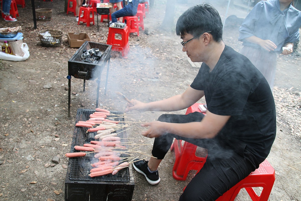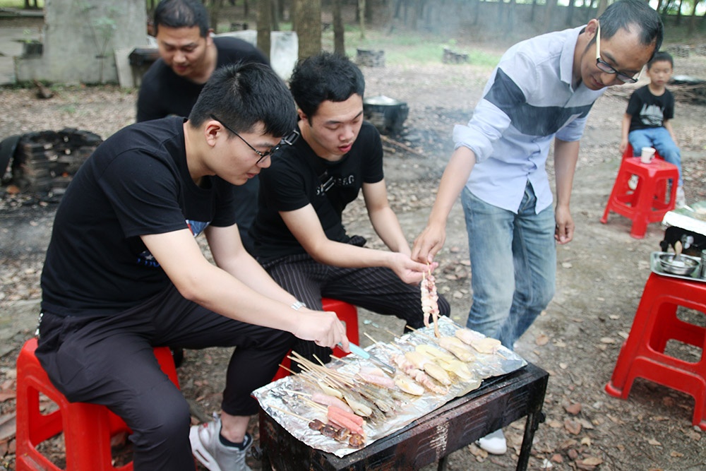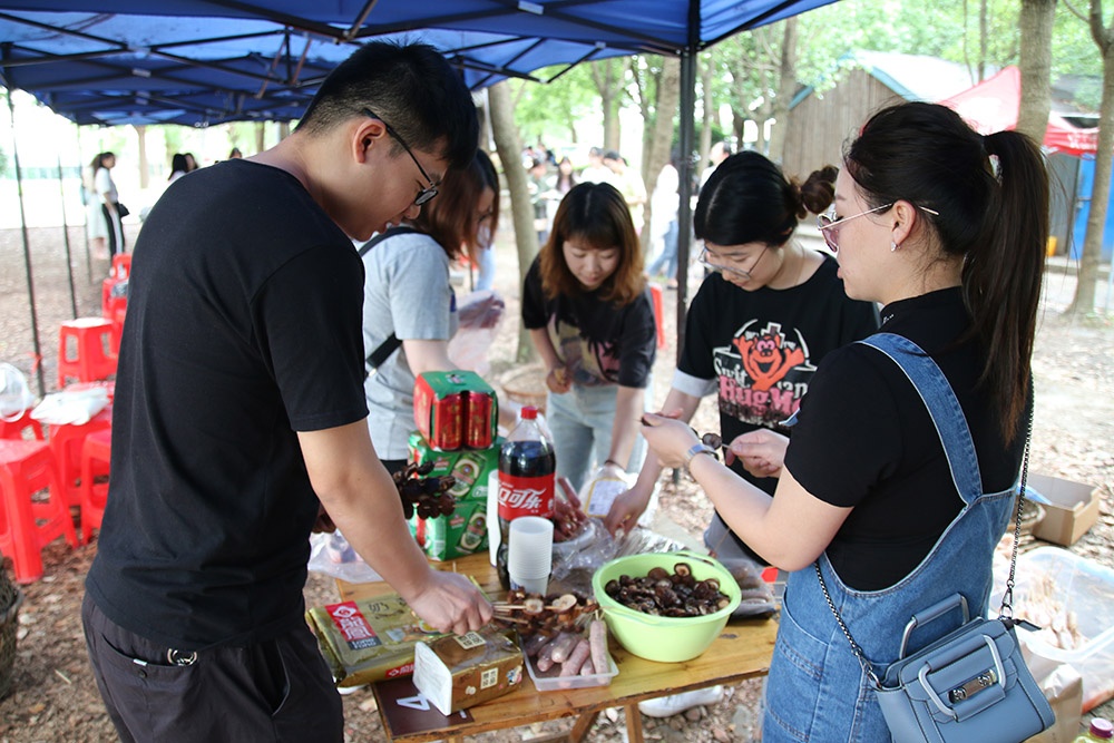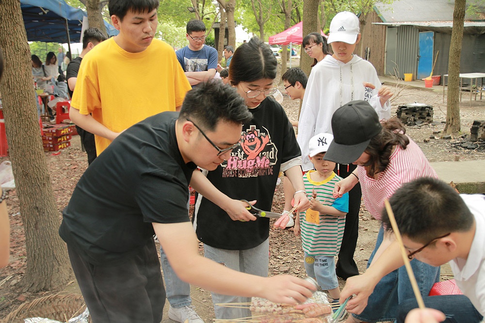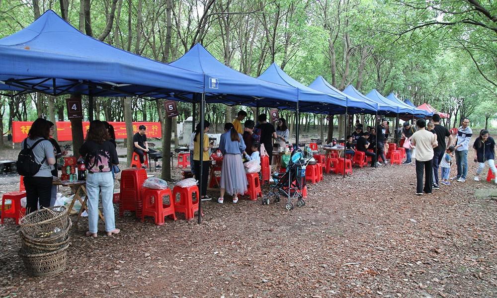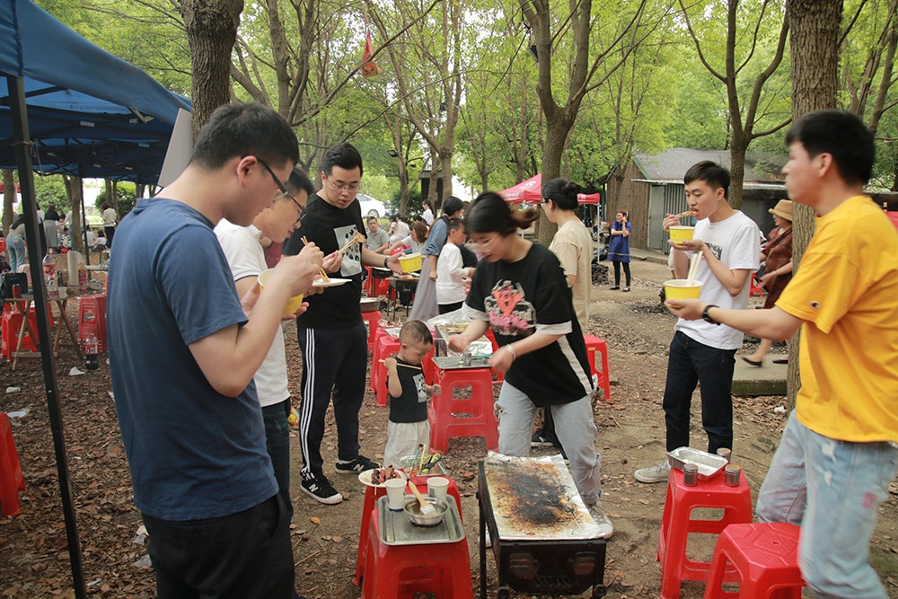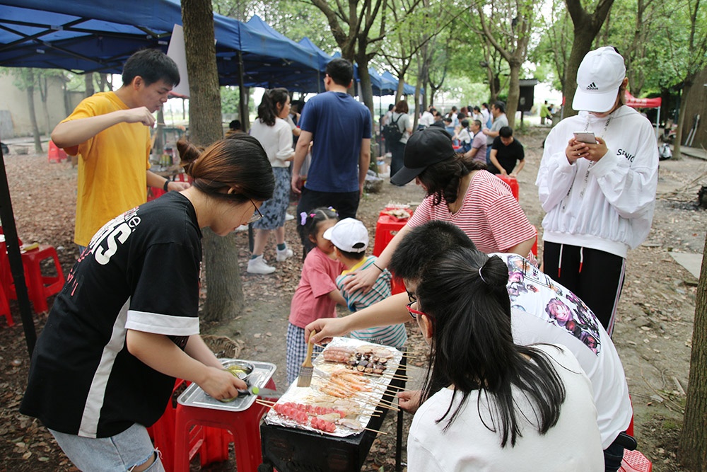 上午9點(diǎn)半家長帶著孩子陸續(xù)來到了此次活動(dòng)地----鳳橋梅花洲,搭帳篷、搭吊床、生烤爐、燒烤......忙得不亦樂乎,享用著美味的同時(shí),也享受著天倫之樂。