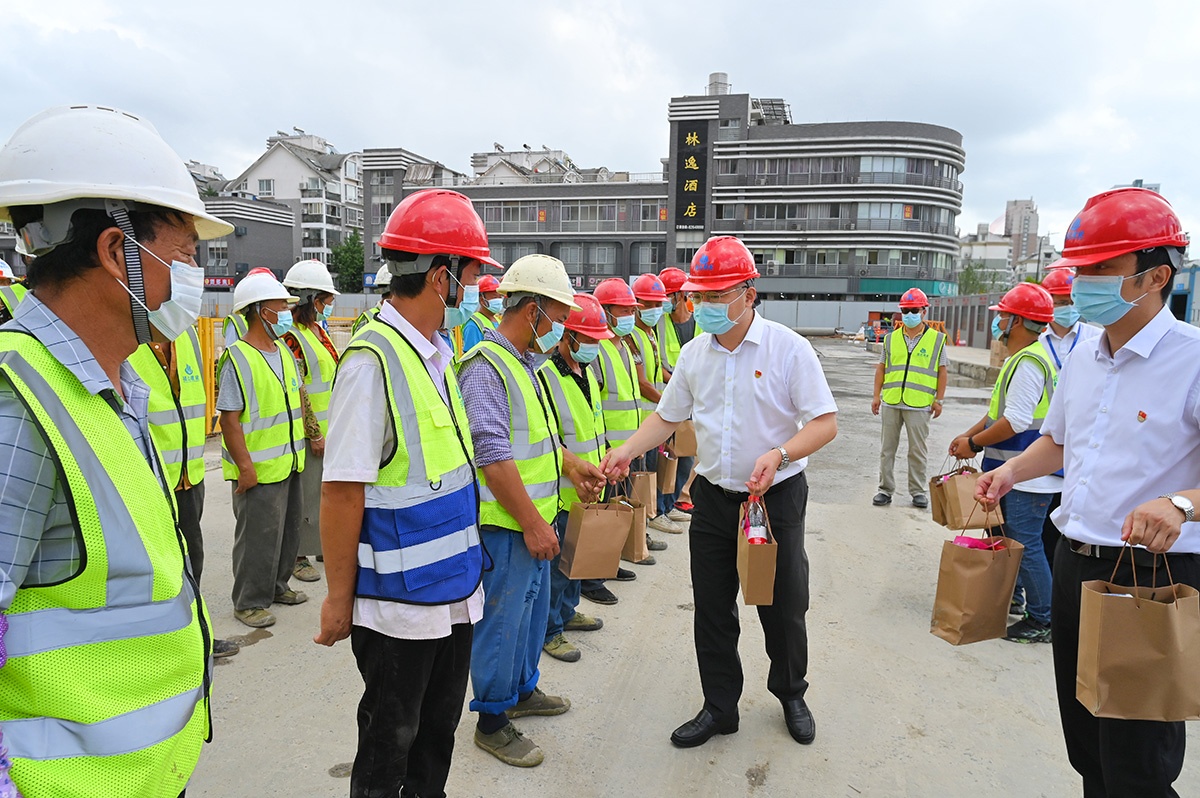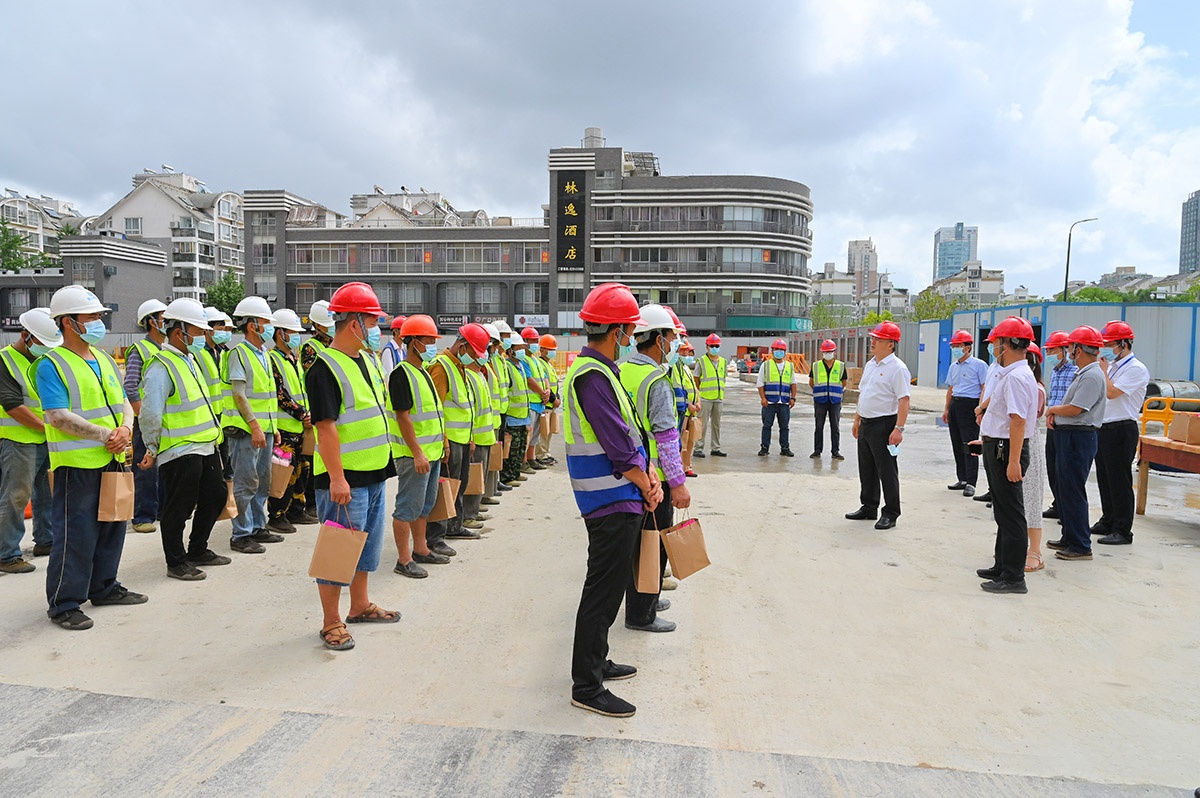 8月4日上午,秀洲區(qū)人大常委會(huì)主任董苗虎、區(qū)委副書(shū)記、政法委書(shū)記王永法等一行來(lái)到福達(dá)建設(shè)承建的秀洲國(guó)家高新區(qū)中心城市品質(zhì)提升項(xiàng)目-兩路兩園兩中心景觀品質(zhì)提升工程(二期)項(xiàng)目施工現(xiàn)場(chǎng),慰問(wèn)奮戰(zhàn)在工地一線的施工人員,送上防暑降溫慰問(wèn)品并叮囑施工人員要避開(kāi)高溫時(shí)段,合理安排作息時(shí)間,嚴(yán)格落實(shí)疫情防控、安全生產(chǎn)和防暑保護(hù)等措施。公司董事長(zhǎng)陸福生及質(zhì)安部相關(guān)負(fù)責(zé)人陪同慰問(wèn)。