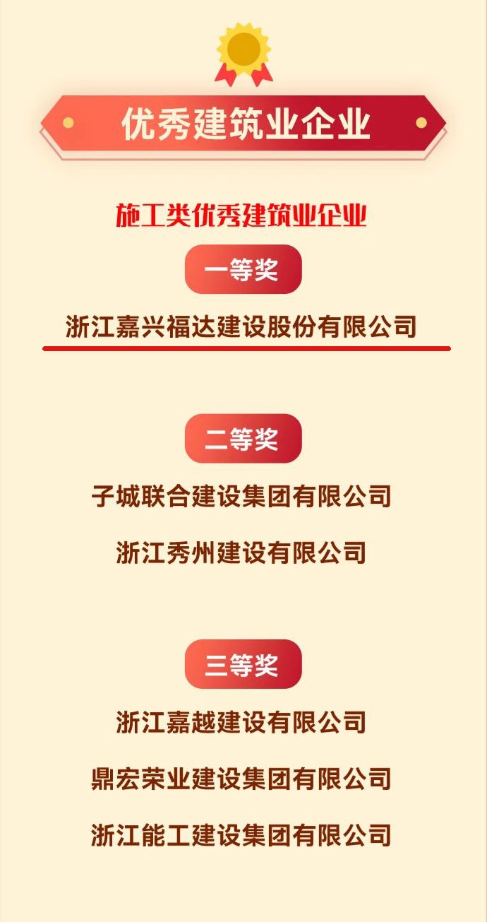 2月20日上午,秀洲區(qū)召開了全區(qū)三級(jí)干部大會(huì),會(huì)議通報(bào)了2023年度鎮(zhèn)(街道)、嘉興國(guó)家高新區(qū)(高照街道)綜合考核結(jié)果,浙江嘉興福達(dá)建設(shè)股份有限公司榮獲“旗幟企業(yè)”和施工類“優(yōu)秀建筑業(yè)企業(yè)”一等獎(jiǎng)。值得一提的是,我司連續(xù)10余年榮獲秀洲區(qū)“旗幟企業(yè)”榮譽(yù)稱號(hào)。