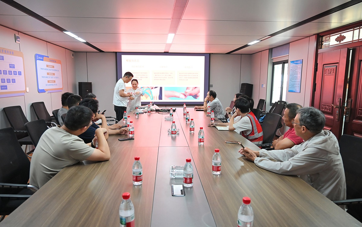 6月18日,秀湖頤養(yǎng)院項(xiàng)目部創(chuàng)新活動(dòng)載體,凝聚安全合力。將黨建工作與安全生產(chǎn)深度融合,聯(lián)合參建單位開展了“紅色工地”黨建聯(lián)建安全主題活動(dòng)。活動(dòng)特別設(shè)置了急救知識(shí)培訓(xùn)環(huán)節(jié),邀請(qǐng)專業(yè)醫(yī)護(hù)人員為項(xiàng)目管理人員和一線工人講解心肺復(fù)蘇(CPR)、創(chuàng)傷包扎、中暑急救等實(shí)用技能。通過現(xiàn)場(chǎng)演示和互動(dòng)實(shí)操,有效提升了工友們?cè)诰o急情況下的自救互救能力,將“生命至上”的理念落到實(shí)處,為項(xiàng)目安全生產(chǎn)注入了“紅色”保障。