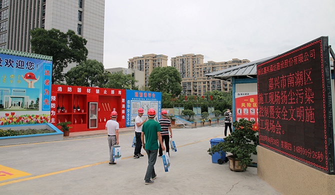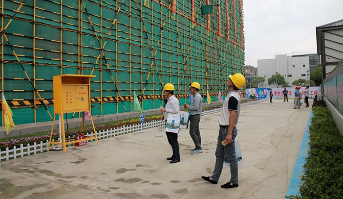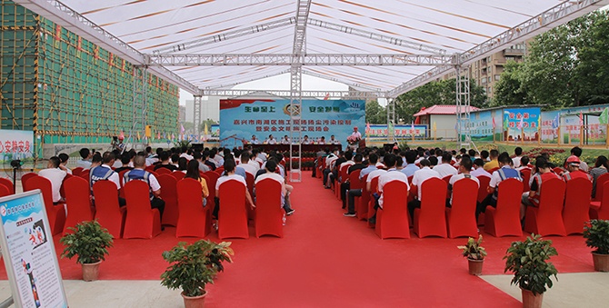 為了落實大氣污染防治“六個 100%”要求,做好施工現(xiàn)場揚塵管控,并做好封閉管理、沖洗設(shè)施、施工場地、架體管理、現(xiàn)場管理、垃圾處置及運輸管理七個“規(guī)定動作”。更好的踐行“生命至上,安全發(fā)展”全國安全生產(chǎn)月主題活動。2018年6月28日下午,由嘉興市南湖區(qū)住房和城鄉(xiāng)建設(shè)局主辦,浙江嘉興福達建設(shè)股份有限公司承辦的“南湖區(qū)施工現(xiàn)場揚塵污染控制暨安全文明施工現(xiàn)場會”在我公司南湖區(qū)法院檢察院專業(yè)技術(shù)用房建設(shè)項目部勝利召開。