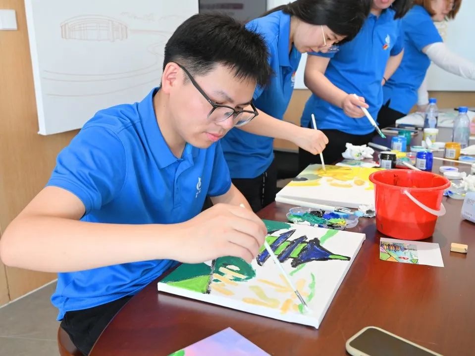 志愿者們團(tuán)結(jié)合作,共同創(chuàng)作了以“迎亞運(yùn)”為主題的繪畫。繪畫被分成12個(gè)部分,每組兩人合作完成一部分,最終將12份小畫作拼成了一幅完整的圖畫。作品充分展現(xiàn)了亞運(yùn)會(huì)的精神和氛圍,同時(shí)向即將到來(lái)的亞運(yùn)健兒傳遞了力量。